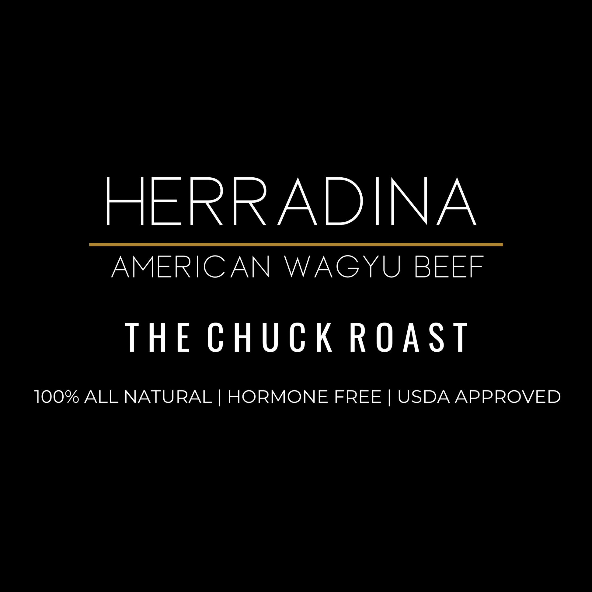 HERRADINA American Wagyu Beef is 100% Natural, Hormone Free and has exceptional flavor. THE HERRADINA CHUCK ROAST has outstanding marbling and is chuck full of the amazing rich beef flavor American Wagyu is known for. This cut is perfect for that favorite family pot roast recipe you love to make. THE CHUCK ROAST can be braised, stewed, roasted or slow cooked in a large pot or dutch oven.